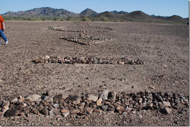 Our first stop was the Quartzsite Rock Alignment on Plomosa Road. These rocks were laid out in the desert for airplanes to see during General Patton’s troop training during World War 2.