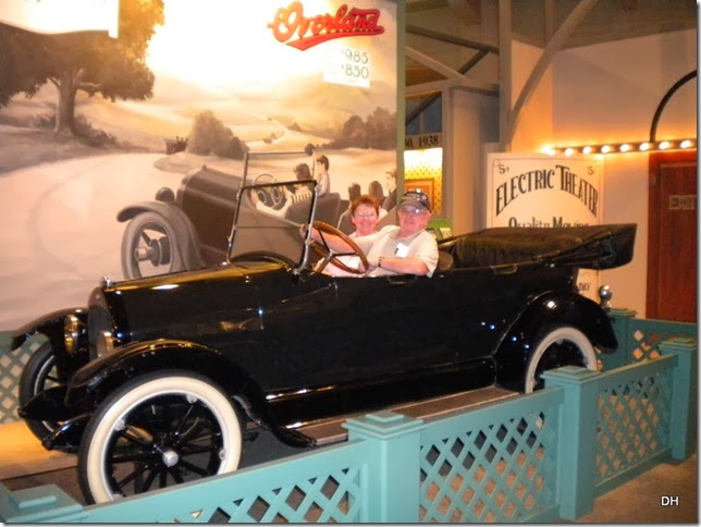This is an Overland Car that was known as a ladies car since it had an electric starter, less leg room in the front for the ladies, and more leg room in the back for the men. Before this, there were few ladies that drove because of the hand crank to start the car.