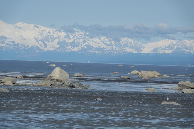 We made our way to Williwaw Campground in the Chugach National Forest and set up. One of the reasons we are here is to see the Bore Tide. So once we set up, we went to check out the best places to watch the tide roll in.